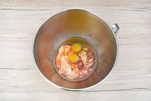 - Die Eier in einer Rührschüssel aufschlagen, Aperol, Öl und Vanilleextrakt hinzufügen und mit einem Schneebesen oder Handmixer gut verrühren.2 Eier, 100 ml Aperol, 100 ml Öl, 100 g Joghurt, 1 TL Bourbon Vanilleextrakt