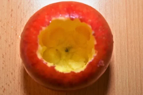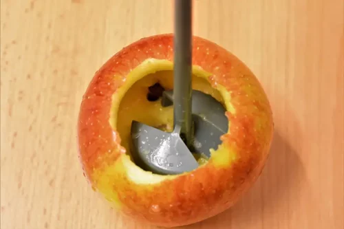 - Die Äpfel großzügig aushöhlen, dabei darauf achten, dass die Schale nicht beschädigt wird.