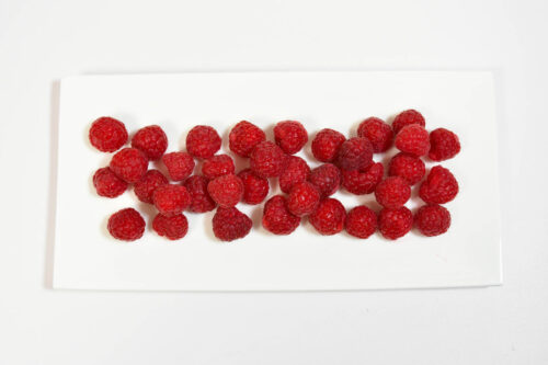 - Am Morgen die Himbeeren waschen, verlesen und abtropfen lassen.30 g Himbeeren