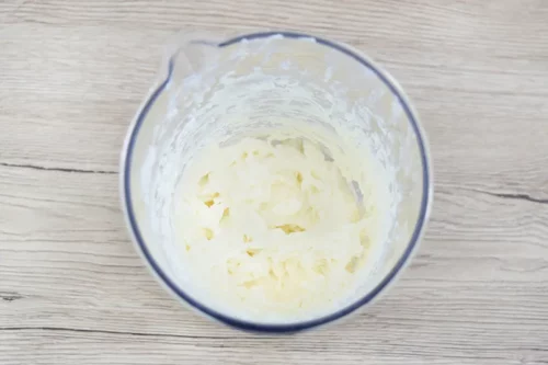 - Die Sahne mit dem Handmixer oder ähnlichem aufschlagen und in Kühlschrank stellen.50 ml Schlagsahne