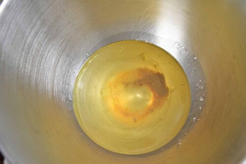- In eine Rührschüssel das Wasser, das Öl, den Essig und Salz sowie Zucker einfüllen.