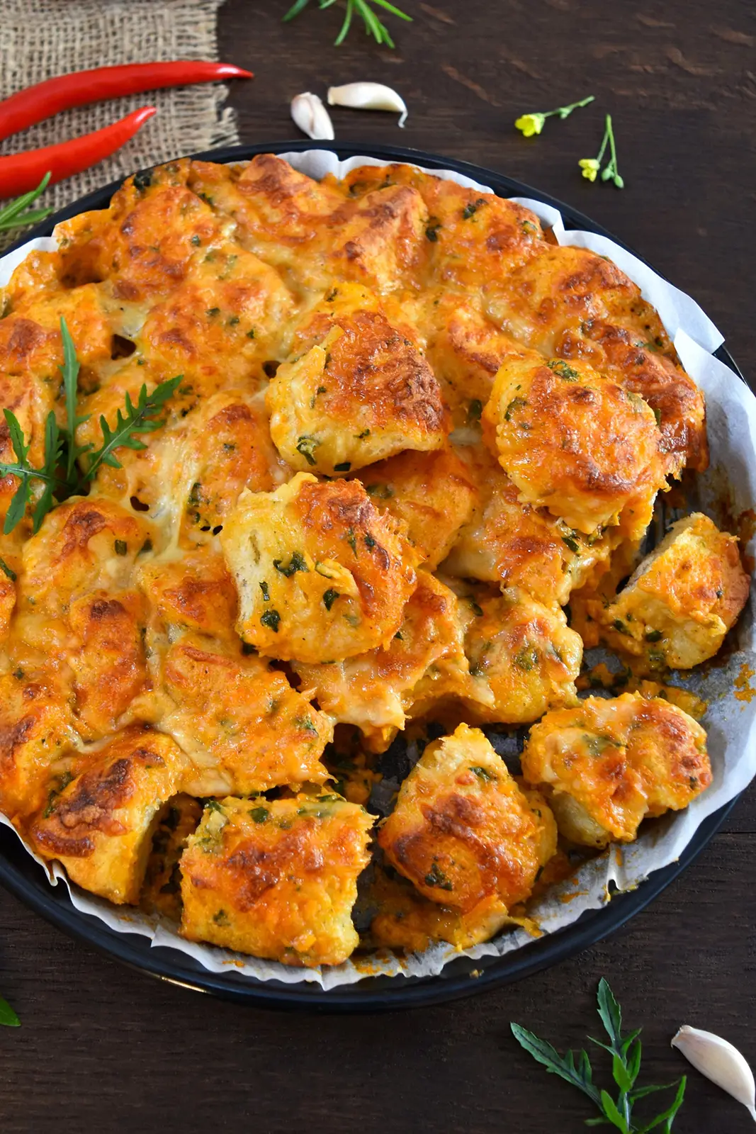 Mit Chili, Paprikapulver oder frischen Kräutern wie Basilikum oder Rosmarin kannst du das Zupfbrot geschmacklich variieren.