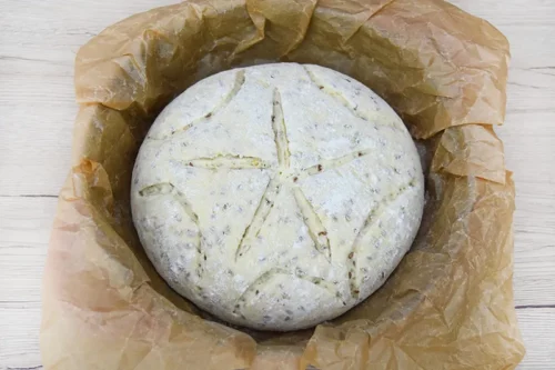 - Nach der zweiten Ruhezeit die Teigkugel nach Gusto einschneiden.