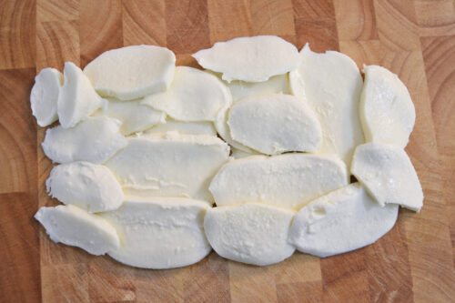 - Den Mozzarella in Scheiben schneiden.200 g Mozzarella