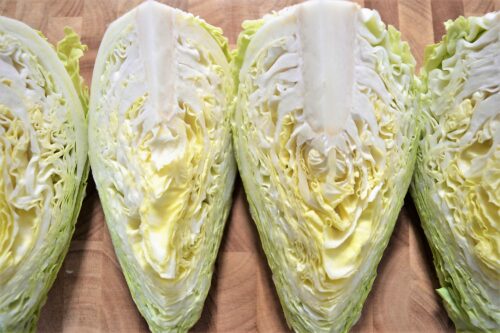 - Den Spitzkohl putzen, waschen und vierteln.1 Spitzkohl