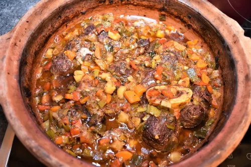 In meiner Heimat Mazedonien gibt es viele Gerichte, die im Tontopf zubereitet werden, so auch die Geschmorte Beinscheiben aus dem Tontopf.