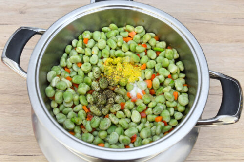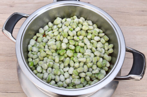 - Die tiefgefrorenen Dicken Bohnen zugeben und für circa 4 min mit anbraten.1000 g Dicke Bohnen