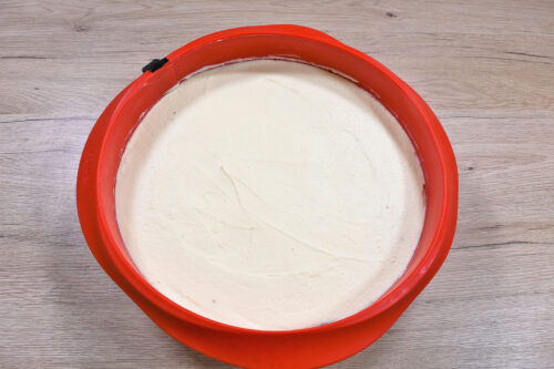 - In eine runde Springform die Keks-Butter-Masse geben und diese gleichmäßig auf dem Boden verteilen und andrücken.