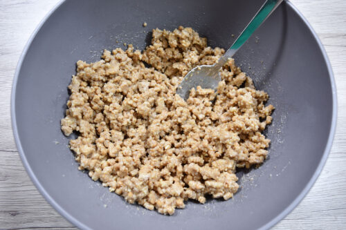- Die Vollkornkekse in einen Gefrierbeutel geben und mit einer Kuchenrolle oder einem anderen Küchenwerkzeug zerkleinern.300 g Vollkorn Butterkekse