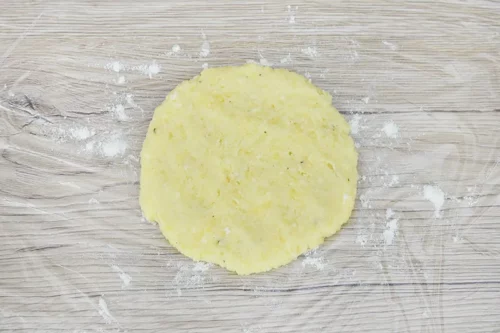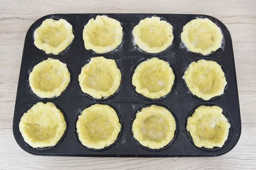 - Dieses Stück Teig in die Form legen und seitlich leicht andrücken.
