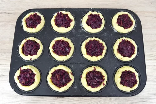 - Den Muffin mit Rotkohl füllen.