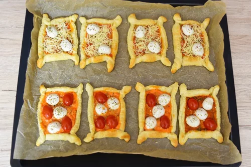 Diese knusprigen Blätterteig Mini-Pizzen sind die perfekte Snack-Idee für Partys, Buffets oder den schnellen Hunger. Mit einer würzigen Tomatensoße, frischem Mozzarella und aromatischen Zutaten belegt, lassen sie sich ganz nach Geschmack variieren. Einfach, schnell und unwiderstehlich köstlich – probiere es aus!