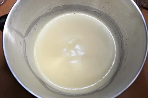 - Zucker und Eier sehr schaumig rühren, ich überlasse diese Arbeit meiner Küchenmaschine.