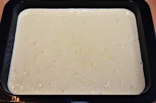 - Den Teig in die gebutterte Form geben und diese in den auf 160°C (Umluft 140°C) vorgeheizten Backofen geben und in 30-40 min backen.