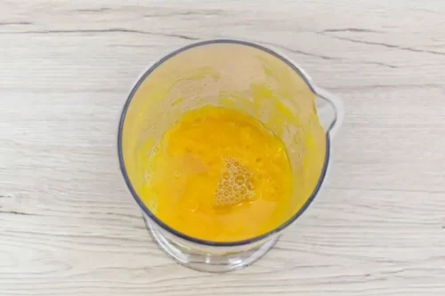 Mango, Limettensaft und Agavendicksaft im Mixer kräftig mixen, bis ein leichter Schaum entsteht, der dem Drink eine besonders cremige Note verleiht.