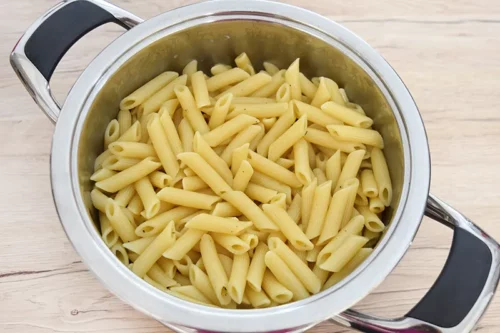 - In der Zwischenzeit die Pasta nach Packungsanleitung kochen. Etwas Kochwasser zurückhalten, circa 100-150 ml, etwa eine Kelle.250 g Pasta