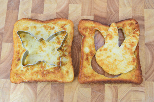 - Diese Toastscheiben in die Pfanne geben und beidseitig goldbraun ausbacken.