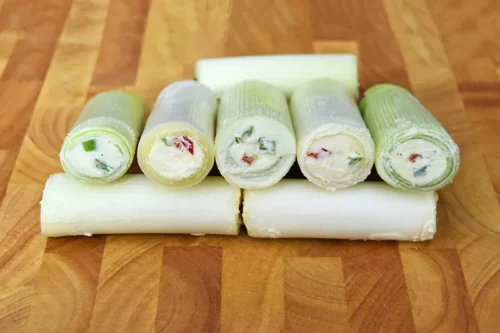 - Die Käsecreme in die Lauchstücke einfüllen.