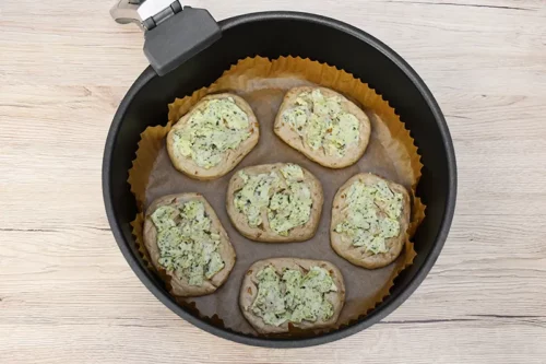 - Den Einsatz des Airfryer in diesen einsetzen und die Brötchen in 15-17 Minuten goldbraun frittieren oder backen. Nach der Hälfte der Frittierzeit die Brötchen um circa 180 Grad drehen, siehe zu diesem Schritt bitte in der Notiz.