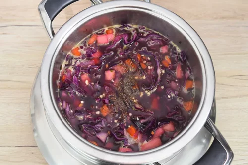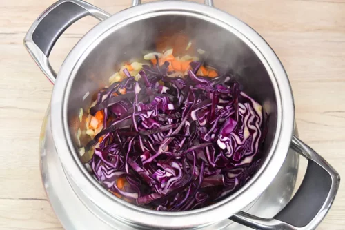Verwenden Sie eine Küchenmaschine oder ein scharfes Messer, um den Rotkohl fein zu schneiden – so wird die Suppe besonders cremig. Mein Favorit in diesem Fall ist die Mandoline.