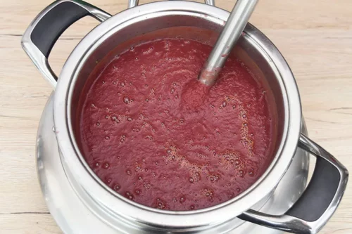 - Die Suppe mit einem Stabmixer fein pürieren, bis sie eine cremige Konsistenz hat und abschmecken.
