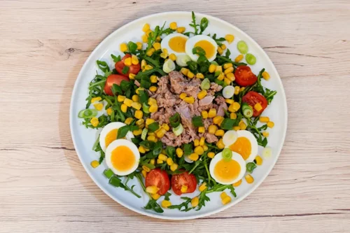 Rucola-Thunfisch-Salat mit Ei und Mais