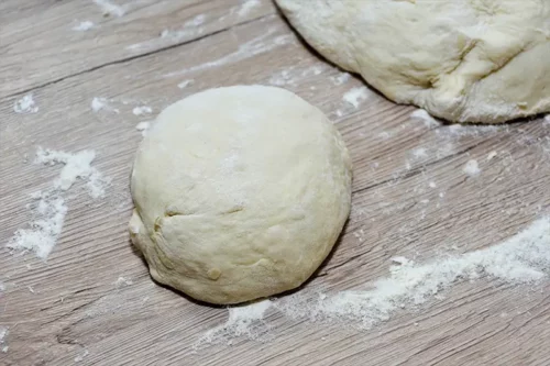 - Anschließend den Teig auf eine bemehlte Arbeitsfläche geben und ca. 250 g davon abschneiden. Dies ist der Teig, der jetzt zum Sauerteig werden soll.