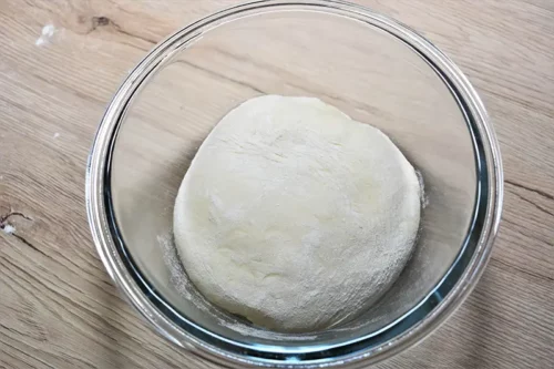 - Den Teig mit ein wenig Mehl durchkneten, zu einer Kugel formen und in eine Dose oder in ein Glas mit Deckel geben und an einem warmen Platz stellen.