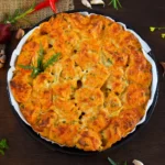 - Wenn die Optik stimmt, dann die Formen für 20 min in den heißen Ofen geben und überbacken. Wer mit einer großen Auflaufform arbeitet verteilt Zwiebelscheiben, Paprika und Tomaten nach seinem Geschmack.