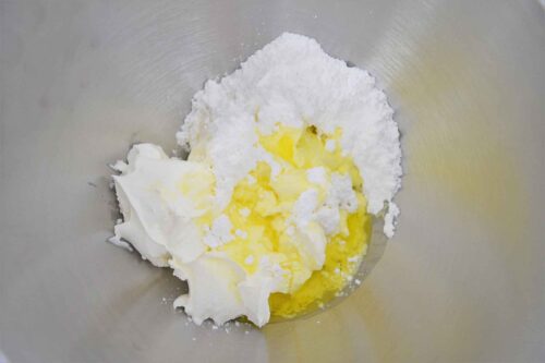 - In eine Rührschüssel den Mascarpone, den Joghurt, den Puderzucker und den Bananen Likör geben und mittels Küchenmaschine oder Handmixer in 2-3 min zu einer homogenen Masse aufschlagen.